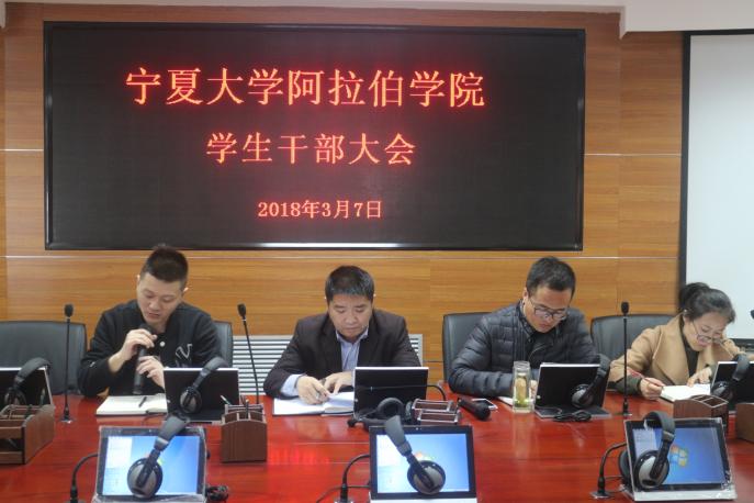 ‍‍接着,金宁洋老师对团学工作做了安排,对本学期的晨读、宿舍风采大赛、欢送毕业生晚会、“语时俱进”杯阿语时文朗诵等重点工作做出了具体要求。
