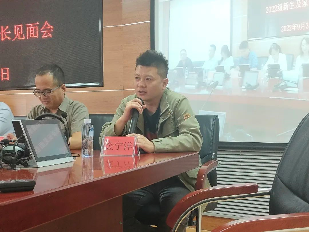 白楠副院长从学院历史沿革、人才培养方向、国际合作交流、教学管理等方面进行了介绍,重点对新生的专业学习中应注意事项进行了强调;冯璐璐副院长介绍了中国阿拉伯国家研究院的发展历程与高端智库、平台建设情况;金忠杰副院长介绍了学院科研、专业、研究生教学情况;学办主任金宁洋讲解了学院目前学生静默期管理注意事项;班主任冯燚、梁道远博士进行了交流发言,两位班主任都对新生和家长们表达了欢迎和感谢,并结合个人求学经历帮助新生们尽快融入大学生活;学生代表 2019级罗源同学结合学习、工作等情况勉励学弟学妹们要学会感恩,珍惜时间,奋发有为;赵永军副书记结合疫情防控纪律、一日作息管理制度、访学、就业等方面,要求新生家长做好与学院、学生的定期沟通;希望各位新生提高安全防范意识,做好学业规划,扣好大学第一粒扣子。