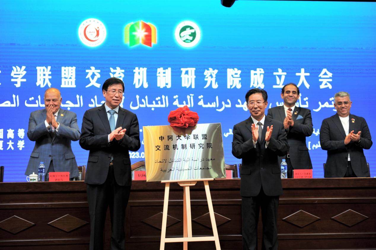 在中阿大学联盟交流机制研究院成立仪式上,与会嘉宾一同见证了中阿大学联盟交流机制研究院的成立。