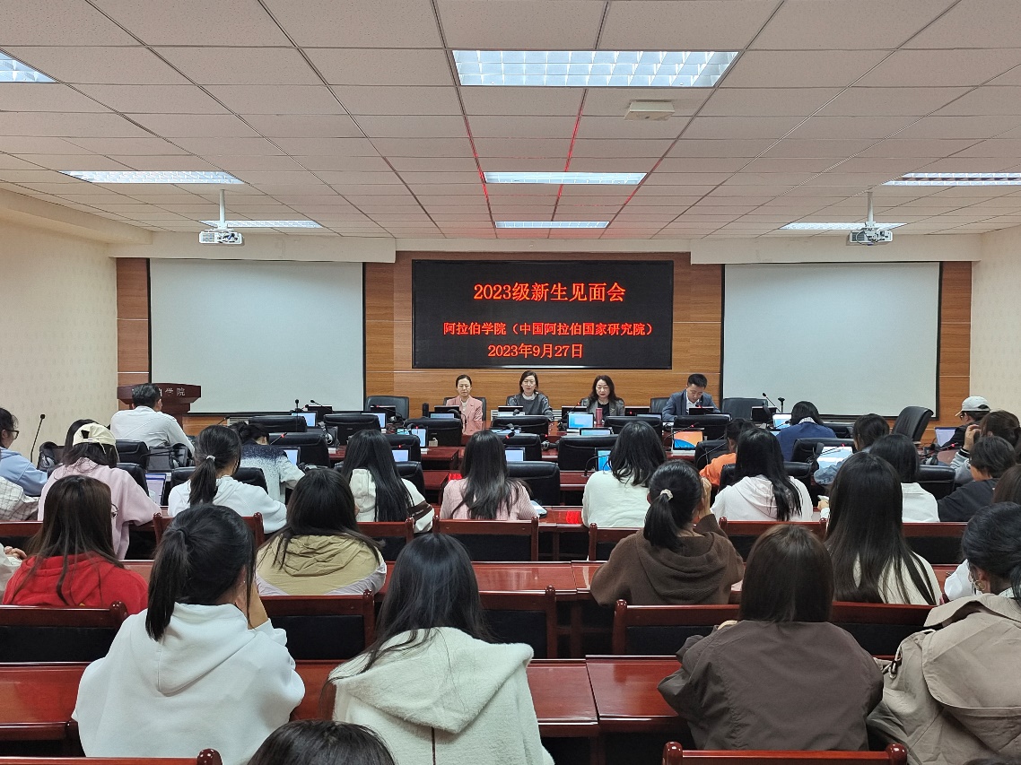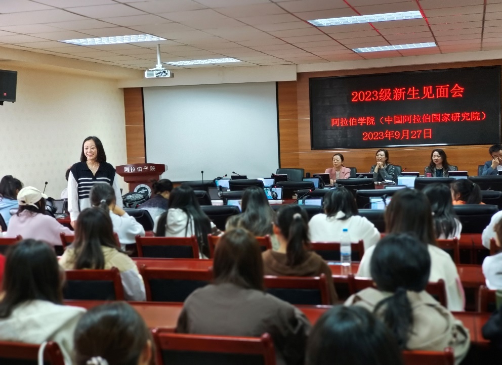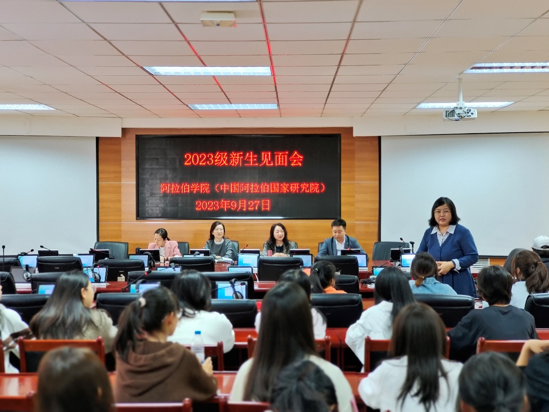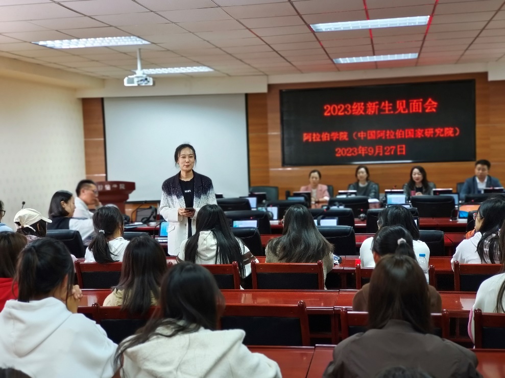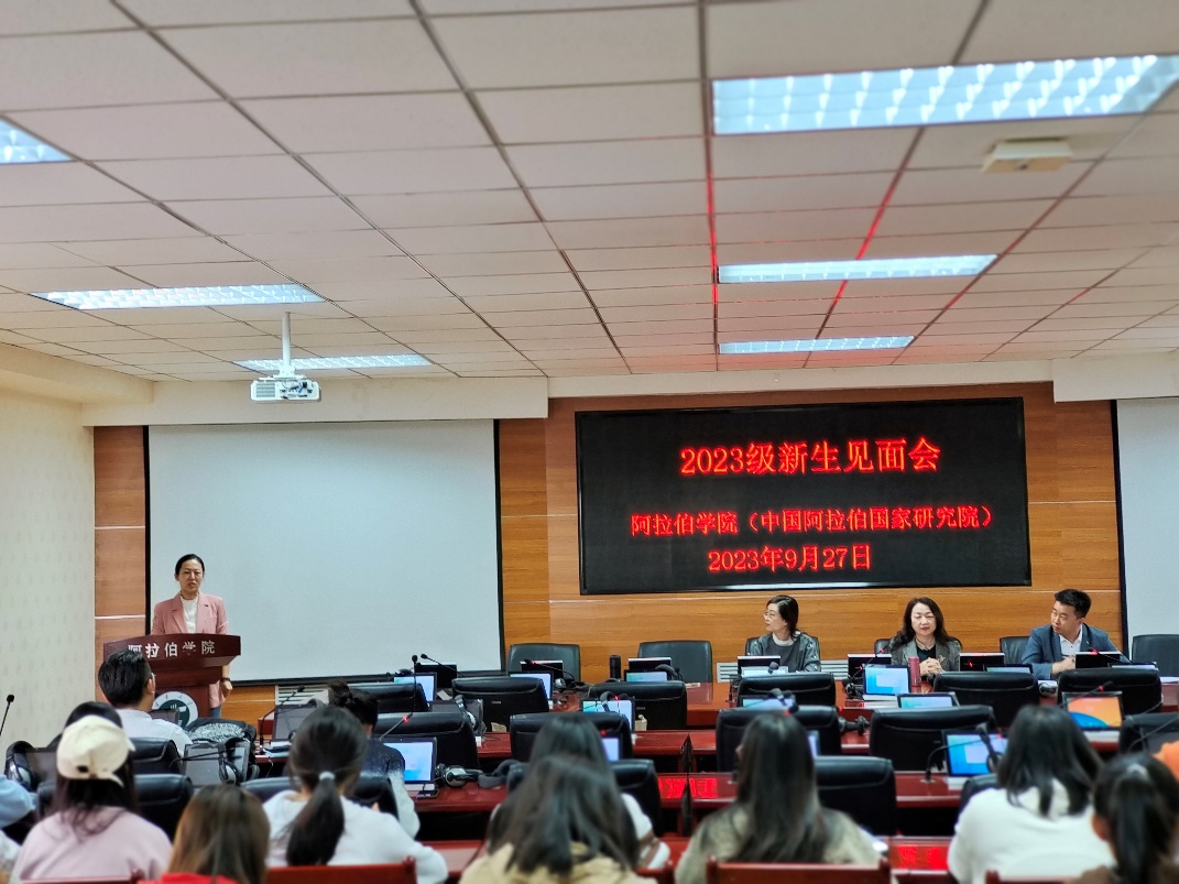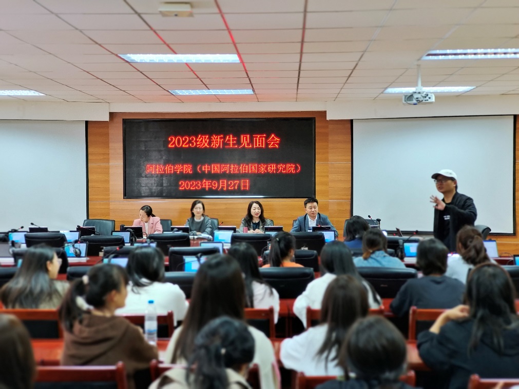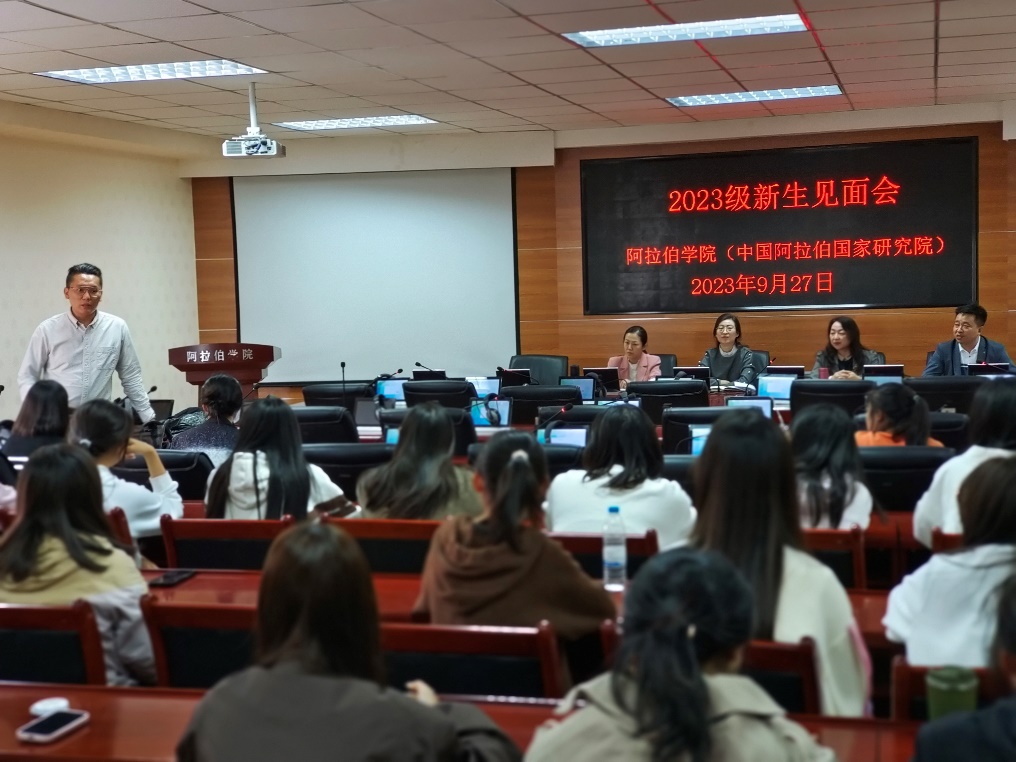 (中国阿拉伯国家研究院)召开2023级新生见面会。出席本次见面会的有学院党总支书记冯璐璐、副院长白楠以及全体在校教职工,大会由副书记、副院长冯燚主持。