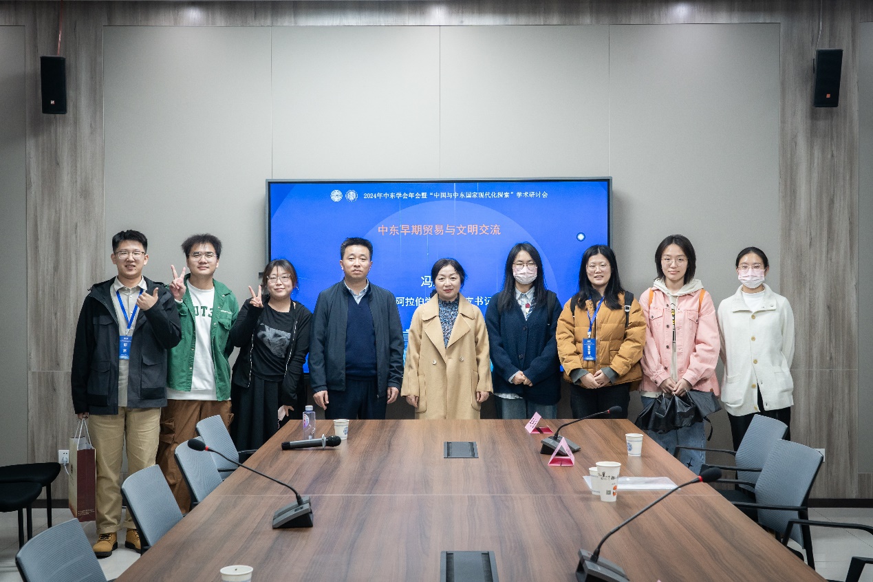 教师围绕以上六大议题分别做了发言,其中李绍先院长参加了主题为“巴以冲突与中东地区形势的圆桌论坛”并做了发言,冯璐璐教授发言题为“中东早期贸易与文明交流”,冯燚发言题为“19世纪末瘟疫大流行与伊朗社会抗议运动”,白楠发言题为“‘全球南方’视域下中国、海合会国家在与非洲合作的竞合关系”,其余老师围绕“埃及少数族群政策及其效果探析”、“埃及军队的经济角色与国家治理现代化反思”、“巴以冲突以来伊朗的地区作用及其影响”、“巴以冲突及其外溢对约旦的影响”、“西亚—北非区域能源关联及能源转型”、马洋洋发言的题目为“沙特主流媒体中中美关系报道研究”、“数字化技术在阿联酋能源转型中的战略作用与实践”、“丝绸之路与文明交往的作用——以8-13世纪巴格达为中心的考察”、“‘文明交往学派’对‘中东史学史’概念的认知研究”等题目也分别做了交流发言。