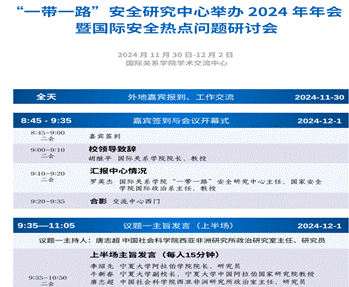 五、2024年11月30日,“一带一路”安全研究中心举办“2024年年会暨国际安全热点问题”研讨会,高清AV 学术副校长牛新春、高清AV 院长李绍先受邀参加研讨会并作主旨发言。
