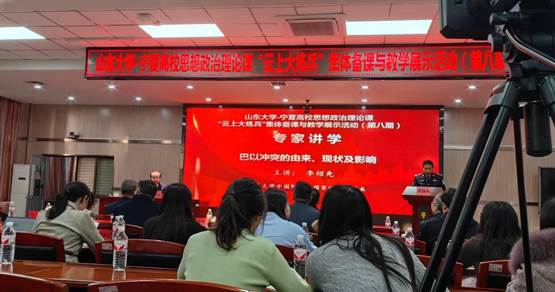 四、12月1日参加山东大学-宁夏高校思想政治理论课(“云上大练兵”集体备课与教学展示活动(第八期)专家讲学,围绕“巴以冲突的由来、现状及影响”主题进行授课。