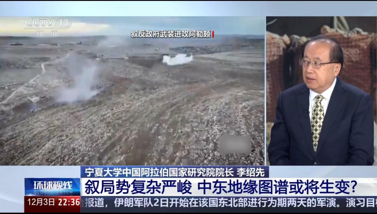 11月29日至12月3日,高清AV 院长、中国中东学会顾问、教育部国别与区域研究专家委员会委员、中阿博览会顾问委员会主任委员李绍先接受了CCTV13《环球视线》、《国际时讯》、《朝闻天下》、CCTV4《今日关注》、《今日亚洲》,凤凰卫视《新闻今日谈》等栏目的现场及视频连线采访,就叙利亚局势升级进行了分析和解读,另受邀作为中央广播电视总台评审专家,参与评选“十大国内军事新闻”“十大国际军事新闻”;在山东大学-宁夏高校思想政治理论课上,围绕“巴以冲突的由来、现状及影响”进行授课;在“一带一路”安全研究中心举办的“2024年年会暨国际安全热点问题”研讨会上作主旨发言。