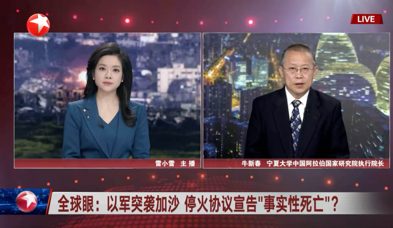 十二、3月18日环球时报题为《Israel launches airstrikes across Gaza Strip, exposing 'inherent fragility' of the negotiation process: expert》文章引用牛校长观点