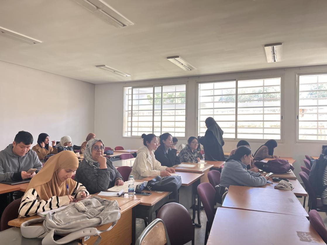 8名研究生与摩洛哥同学结对互助,共同参与课堂学习、课题研讨和学术工作坊。同学们不仅深入学习了阿拉伯语言文学、中东历史与社会等相关专业课程,还围绕“一带一路”文化交流、中阿文明互鉴等主题与当地师生展开多场专题讨论。大家积极融入课堂,踊跃发言,在思维碰撞中提升了专业素养与跨文化理解能力,展现了宁大学子勤学善思、开放自信的精神风貌。
