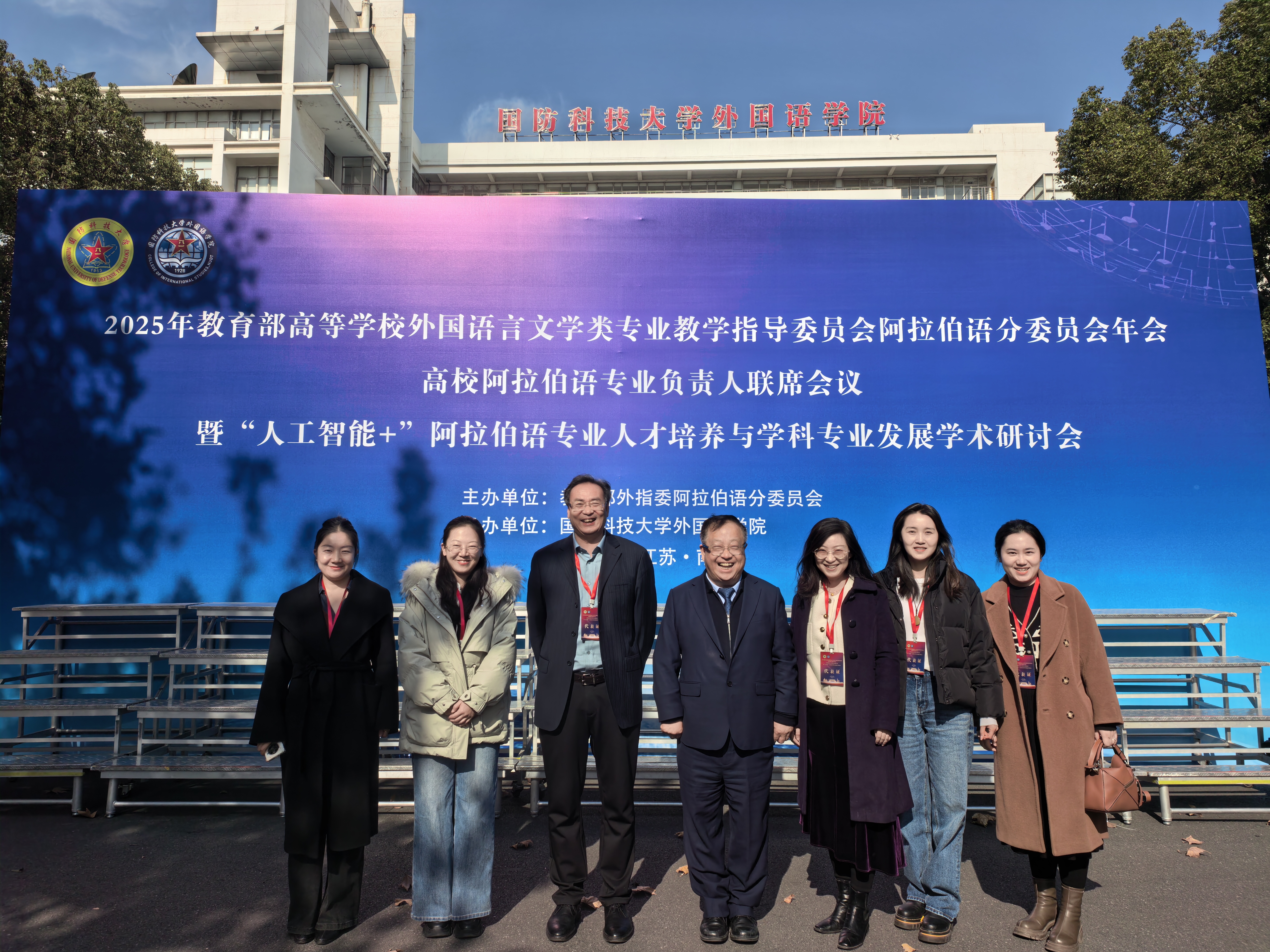 2025年12月6日,2025年教育部高等学校外国语言文学类专业教学指导委员会阿拉伯语专业教学指导分委员会年会暨高校阿拉伯语专业负责人联席会议在南京顺利召开。会议由教育部外指委阿语分指委主办、国防科技大学外国语学院承办。阿语专业分指委委员,以及30余所高校阿语专业负责人参加会议。国防科技大学外国语学院王鑫院长,教育部高等学校外国语言文学类专业教学指导委员会副主任委员、阿拉伯语分委会主任委员、北京语言大学罗林教授出席开幕式并致辞。