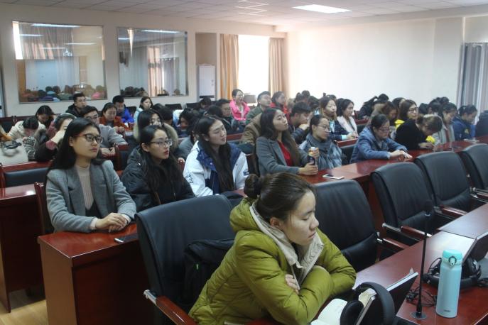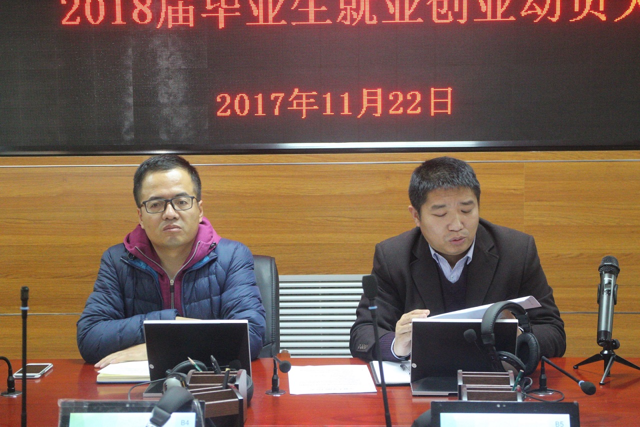 在学院报告厅召开2018届毕业生就业创业动员大会。学院党总支副书记赵永军、学生工作办公室金宁洋老师与全体2018届毕业生参加会议。学生工作办公室主任马生忠主持会议。