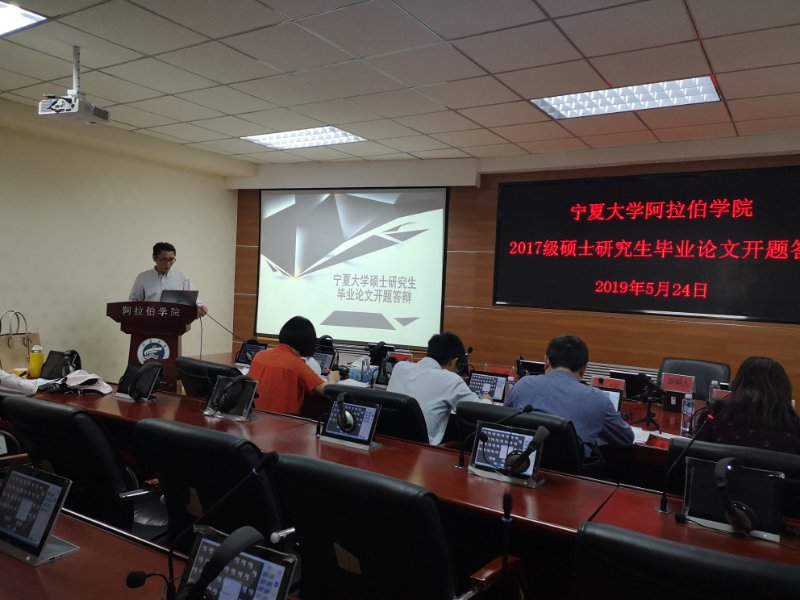 2017级研究生硕士毕业论文开题答辩在学院报告厅举行,特邀人文学院黄学军教授担任本次答辩委员会组长,委员会成员有外国语学院胡笑瑛教授、学院副院长白楠、学院副院长姜克银和刘东宁博士。学院2017级、2018级全体研究生参加了此次答辩。答辩由答辩委员会组长黄学军教授主持。