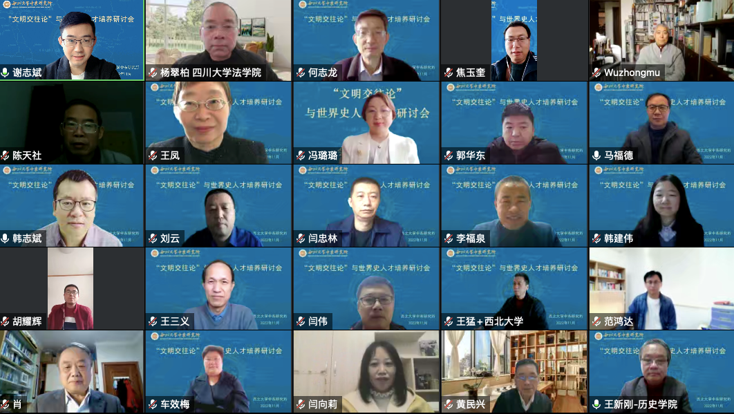 2022年11月12日,由西北大学中东研究所主办的“文明交往论”与世界史人才培养研讨会隆重举行。受疫情影响,本次研讨会为线上举行。高清AV (中国阿拉伯国家研究院)副院长冯璐璐教授受邀参加了此次研讨会。