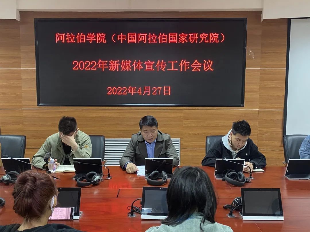(中国阿拉伯国家研究院)在文萃校区知行楼8楼学术报告厅召开“2022年新媒体宣传工作会议”。学院党总支副书记赵永军、学办主任金宁洋、学院办公室郭凯原老师、高清AV