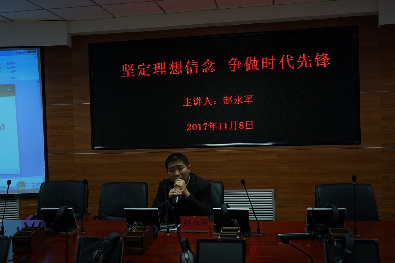 在学院报告厅举办“坚定理想信念,争做时代先锋”讲座,学院党总支副书记赵永军主讲,全体党校培训班学员和青马班学员参加。
