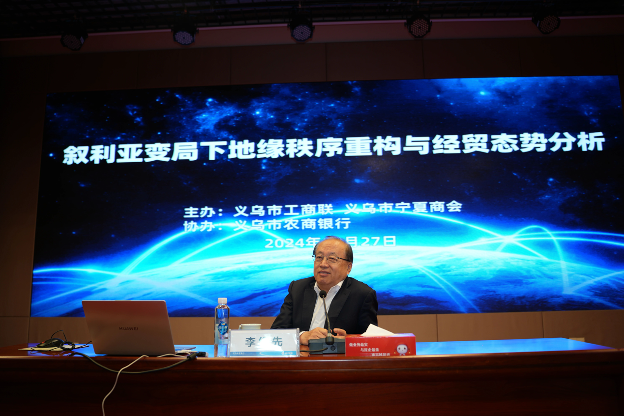 二、12月26-27日,李绍先院长出席义乌市宁夏商会换届大会暨义乌市同心商会成立大会,并在叙利亚变局下地缘秩序重构与经贸态势分享讲座发表重要讲话。