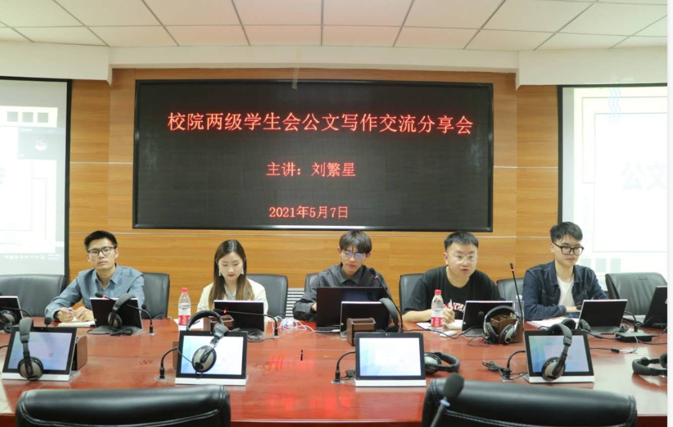报告厅举行校院两级学生会公文写作经验分享交流分享会。团委学生会易班全体成员参加会议。